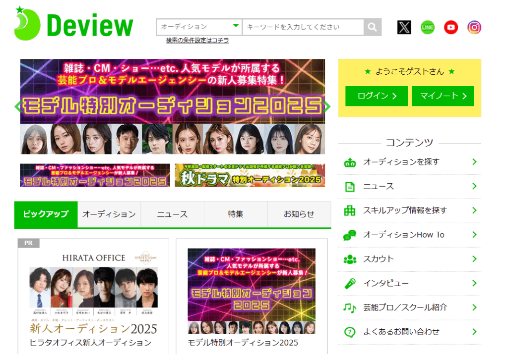 Deview(デビュー) | オリコン系列の公式案件中心 | 詳細な応募要項あり | 初心者・未経験者 | 募集終了済も掲載される |