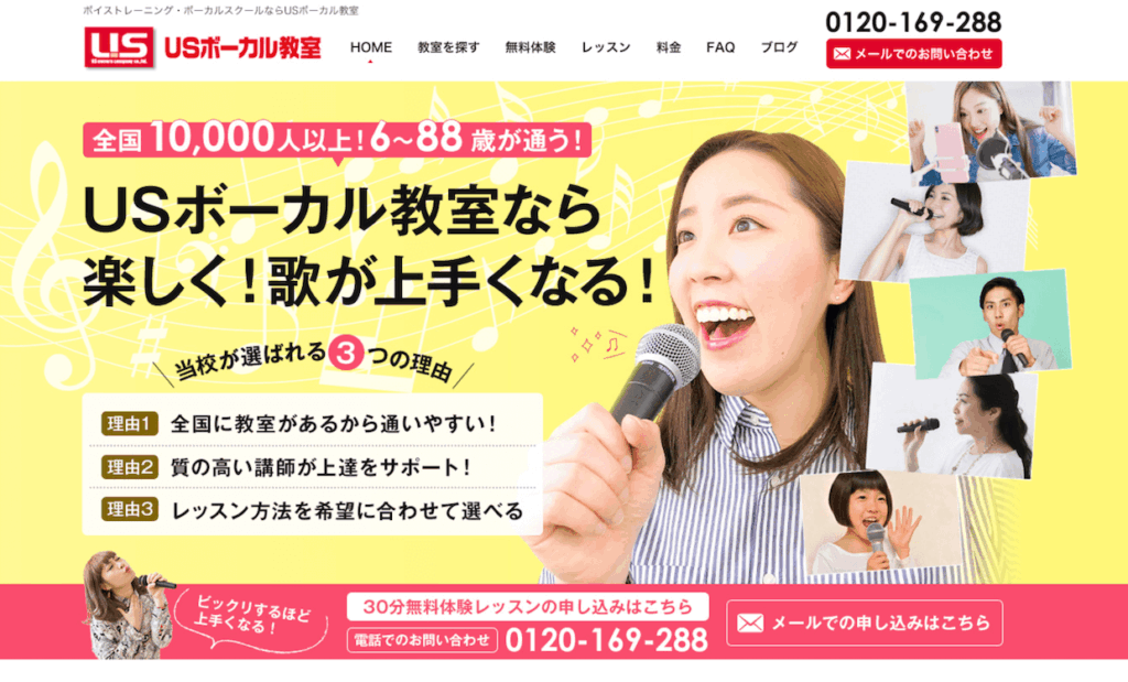 | ひとことポイント | プロ仕様の機材を用いたレコーディングレッスンが特徴 自分の声を録音して弱点を確認できる |