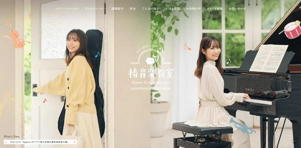 椿音楽教室は、全国200箇所以上の音楽スタジオで受講できる旨を特徴として案内しており、場所を固定せずに通える点が強みです。